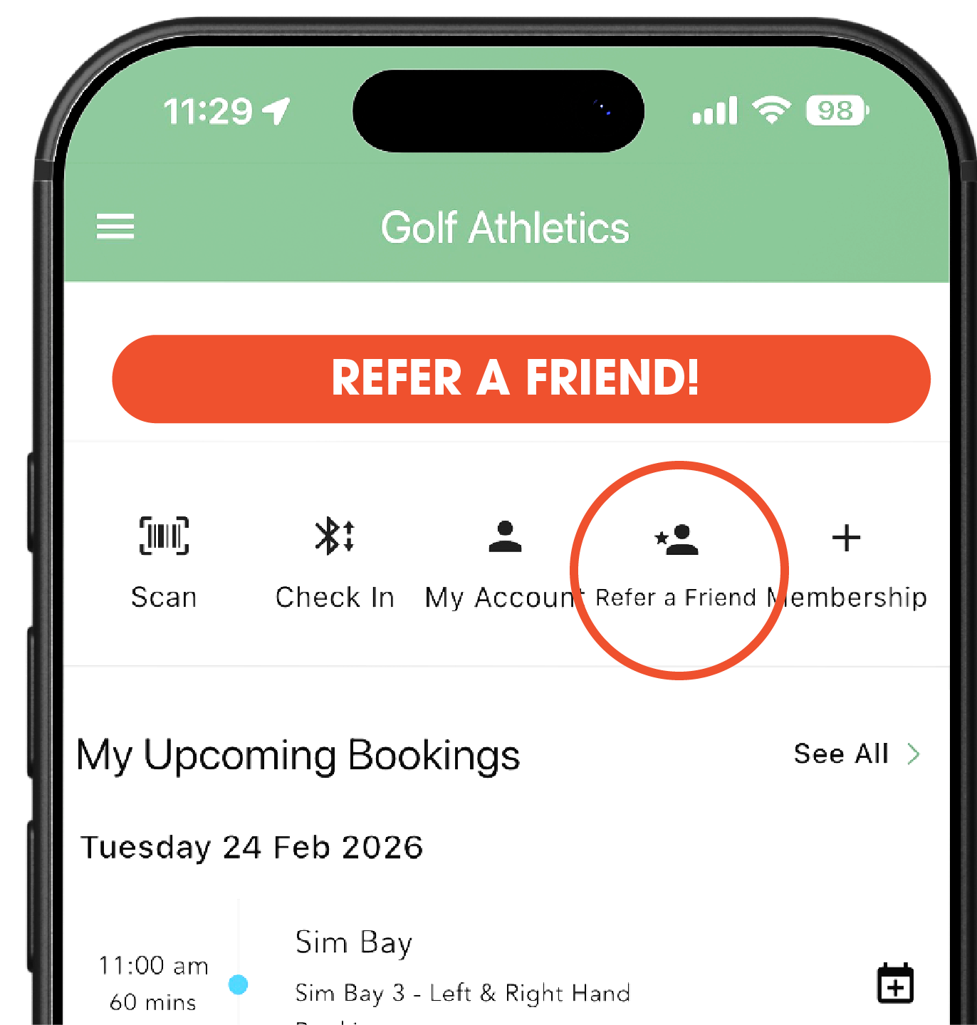 Refer a friend through the Golf Athletics app and you’ll get 2 weeks free added to your membership when they join. Just share your referral code, they sign up, and the bonus time is automatically applied to your account. No forms, no chasing — just more golf for bringing your mates in. Golf’s better when it’s shared.